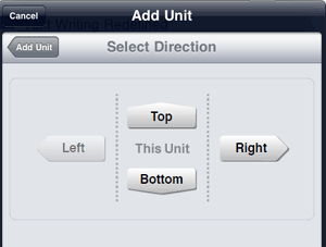 - Tap the position in which the unit is added, with respect to the unit selected in step 1.
