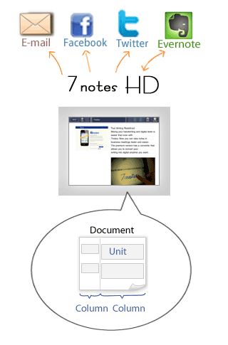 Documents created in 7notes HD can be saved, used, or shared with others in the following ways: