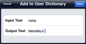 - On the add to user dictionary screen, enter the input text for the alternative in Input Text.