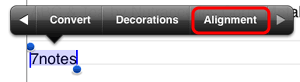 * Alternatively, select letters, tap More from the selection buttons that appear, and then tap Alignment.