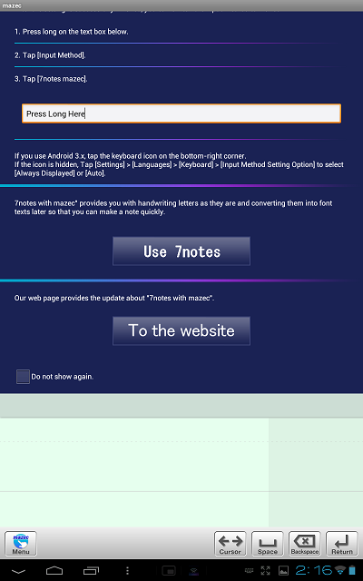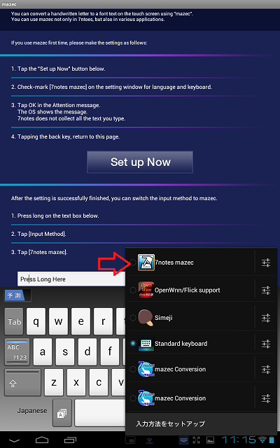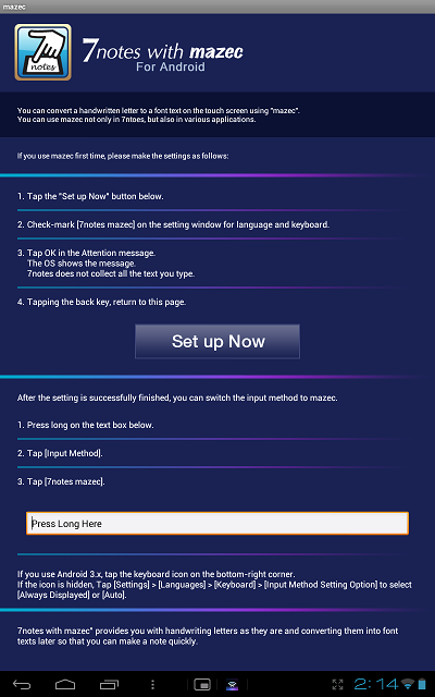 Here are steps to set up "7notes with mazec" correctly on Android 4.0.3 (ICS).