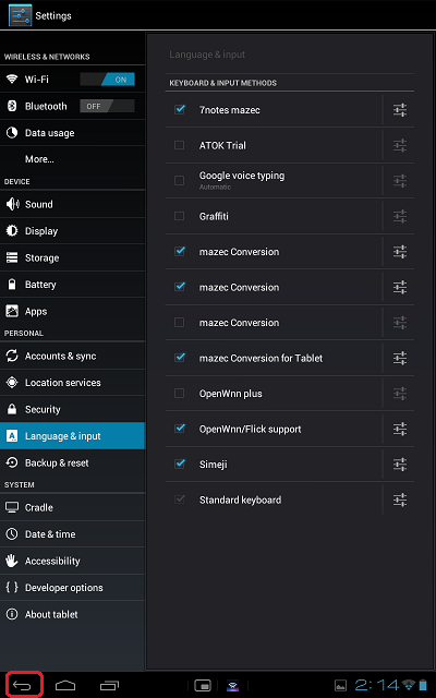- Check "7notes mazec" to "ON" in the language and input settings window.