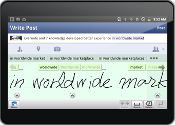 7notes has a state-of-the-art handwriting recognition engine which allows you to change your handwriting to text messages. 7notes also has various exporting features to e-mail, Evernote, Facebook and Twitter, etc.