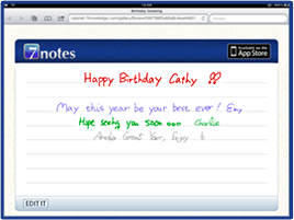 7notes HD offers a social writing experience by providing "Edit it" server functions. Post notes to Facebook or Twitter in our 7document format. The viewer of the note can start reediting the note by simply pressing "Edit it" button. The "Edit it" server inherits the same privacy policy of the social network that you are posting to. Users can this feature within Facebook Groups to collaborate amongst friends or as a message board on Twitter.