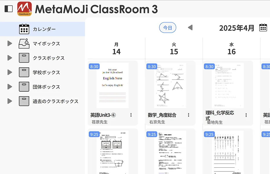 カレンダー表示なので、前時に使用した教材や、今日1日で使用した教材を、すぐに振り返ることができます。振り返りが習慣化し、学びの定着に役立ちます。