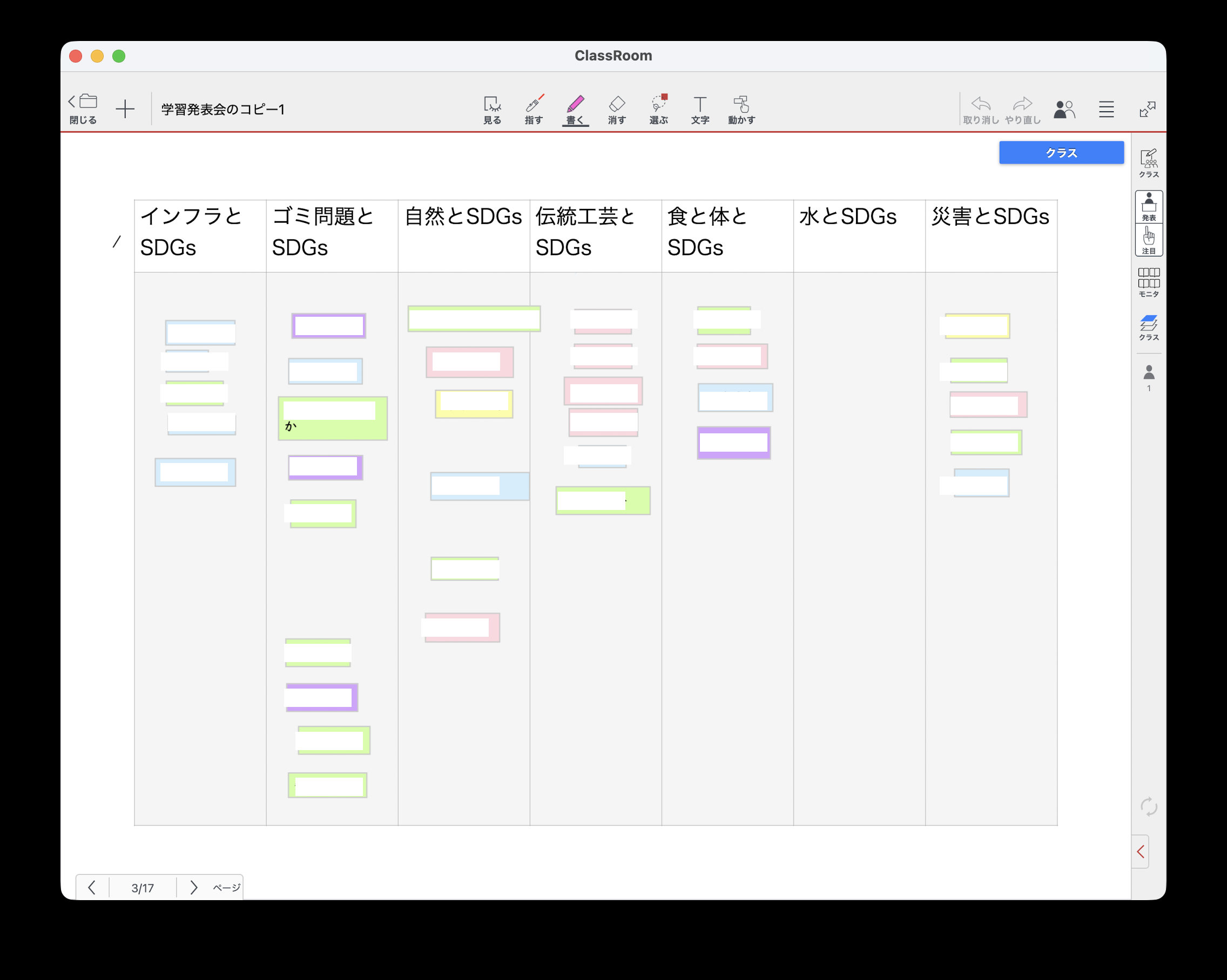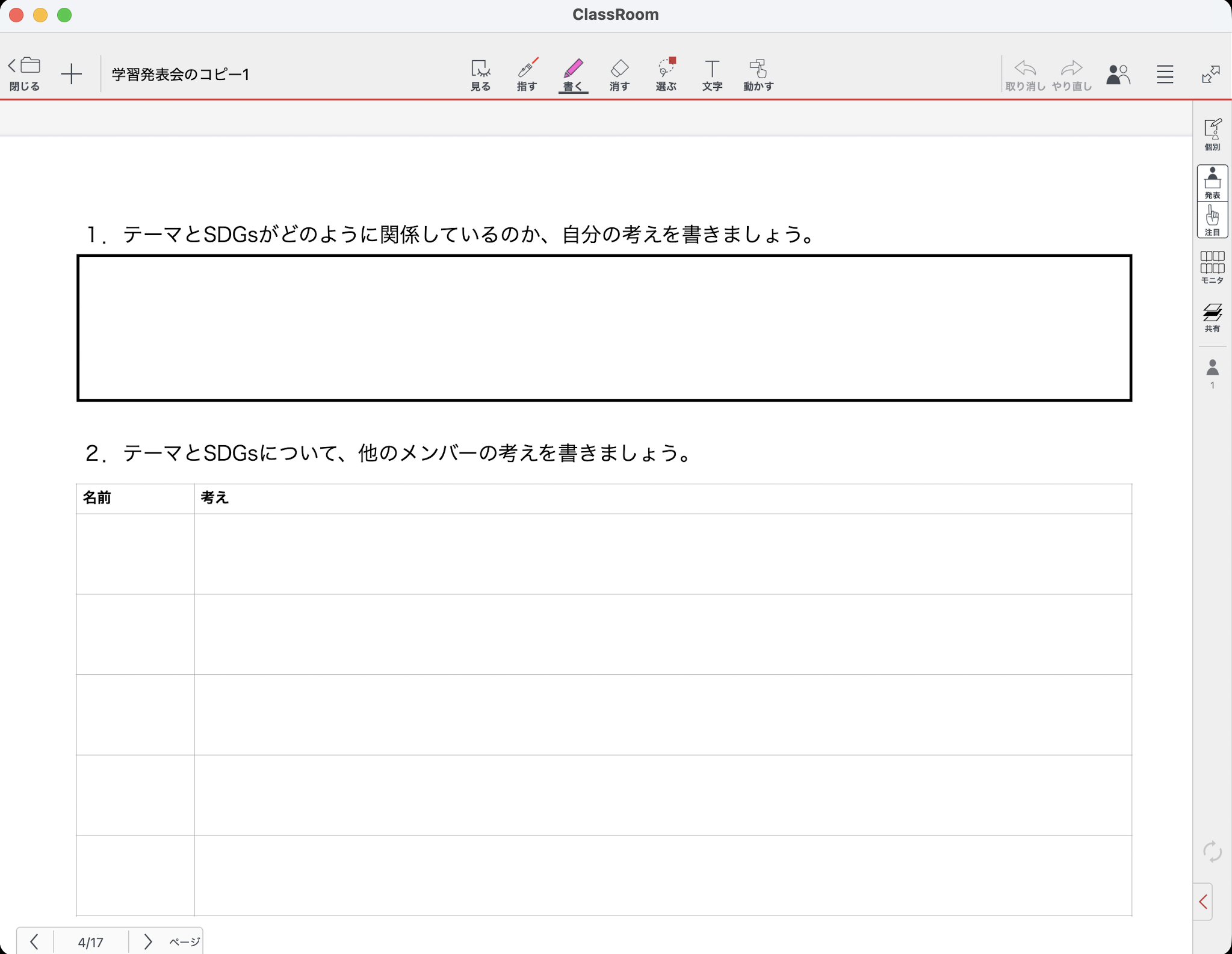 ここからはグループページに設定し、グループごとに調べ活動をしたり、発表の原稿を作成したりする。