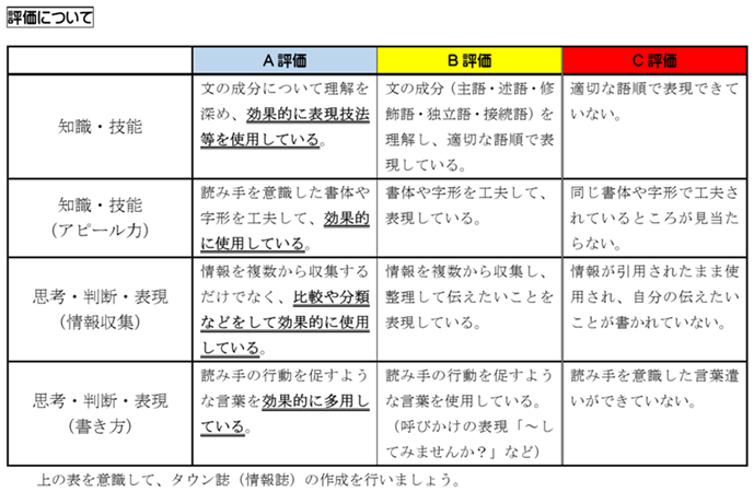 各クラスから優れたタウン誌を作成した人は誰なのかを、理由とともに書かせる。
