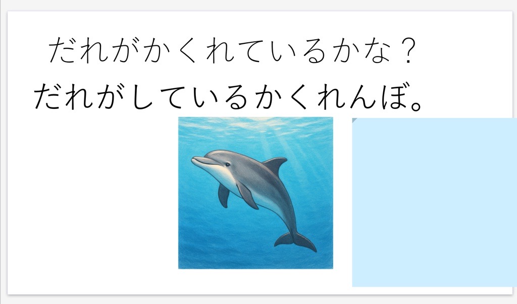 特に説明をせず1ページ目を提示し、めくりに隠されている言葉を考える。
