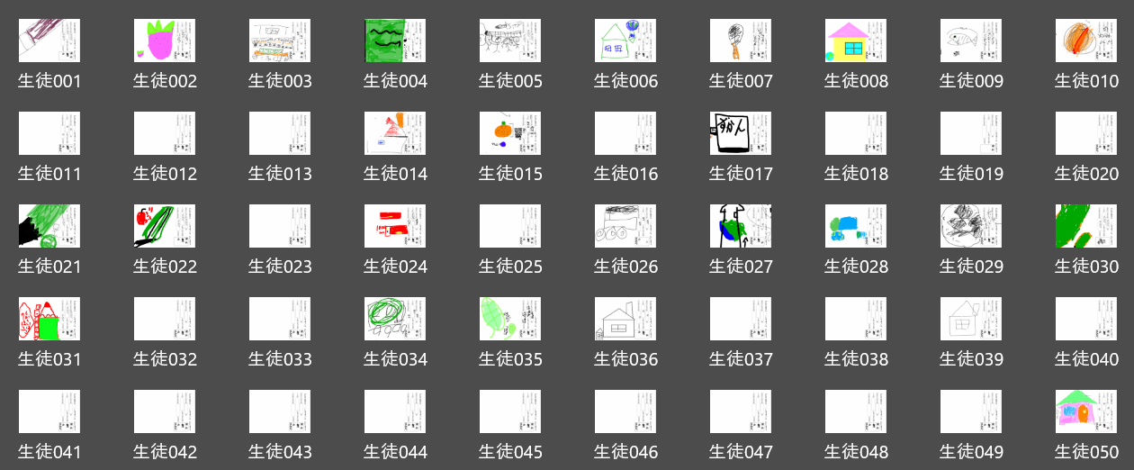 ・「せかいじゅうの〇〇が」を自由に想像させて、絵に描いたり、思ったことを書いたりして発表し合う活動の時に意欲的効率的に授業を行うことにつながった。