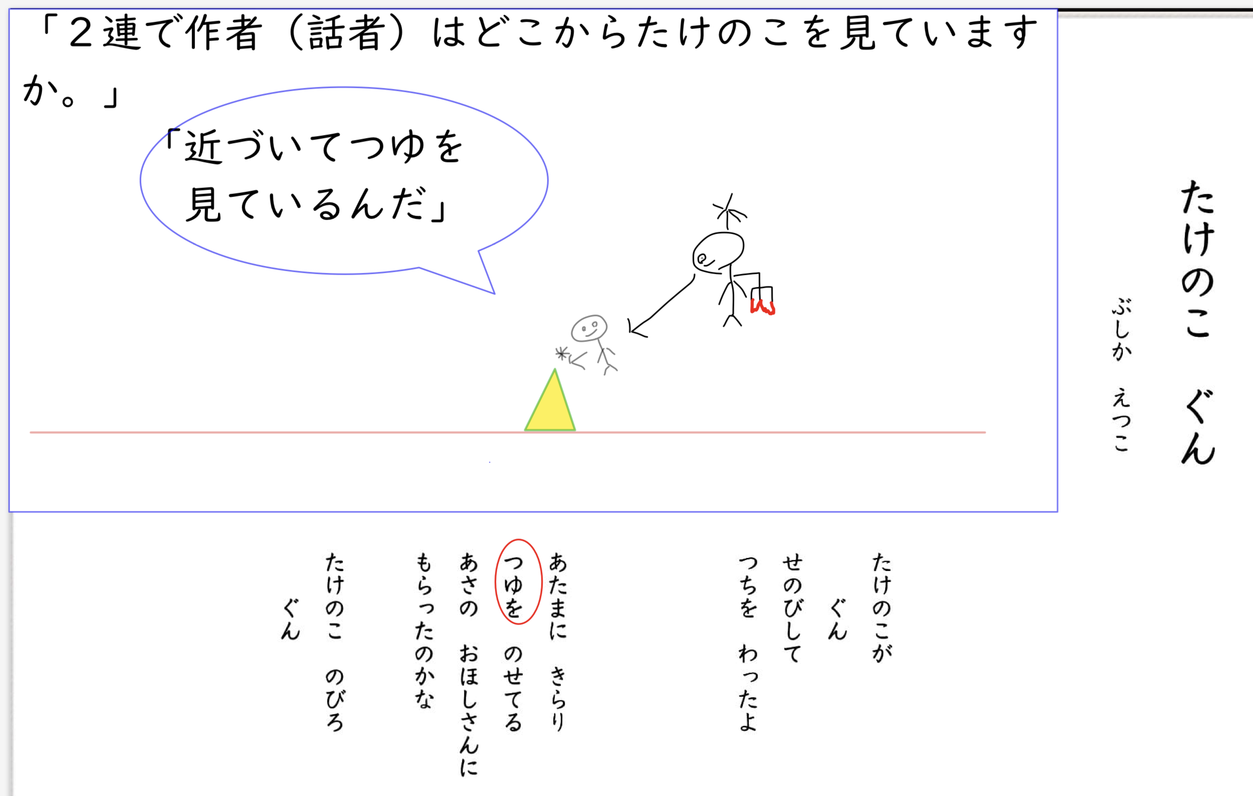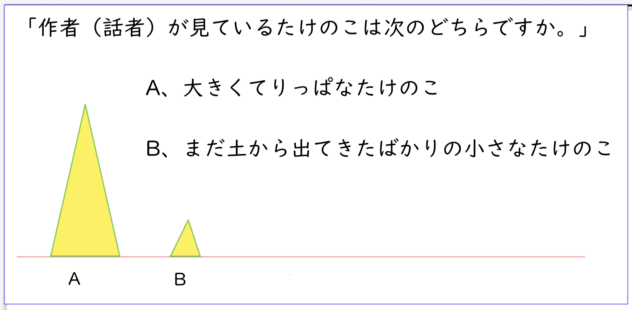 「作者(話者)が見ているたけのこは次のどちらですか。」