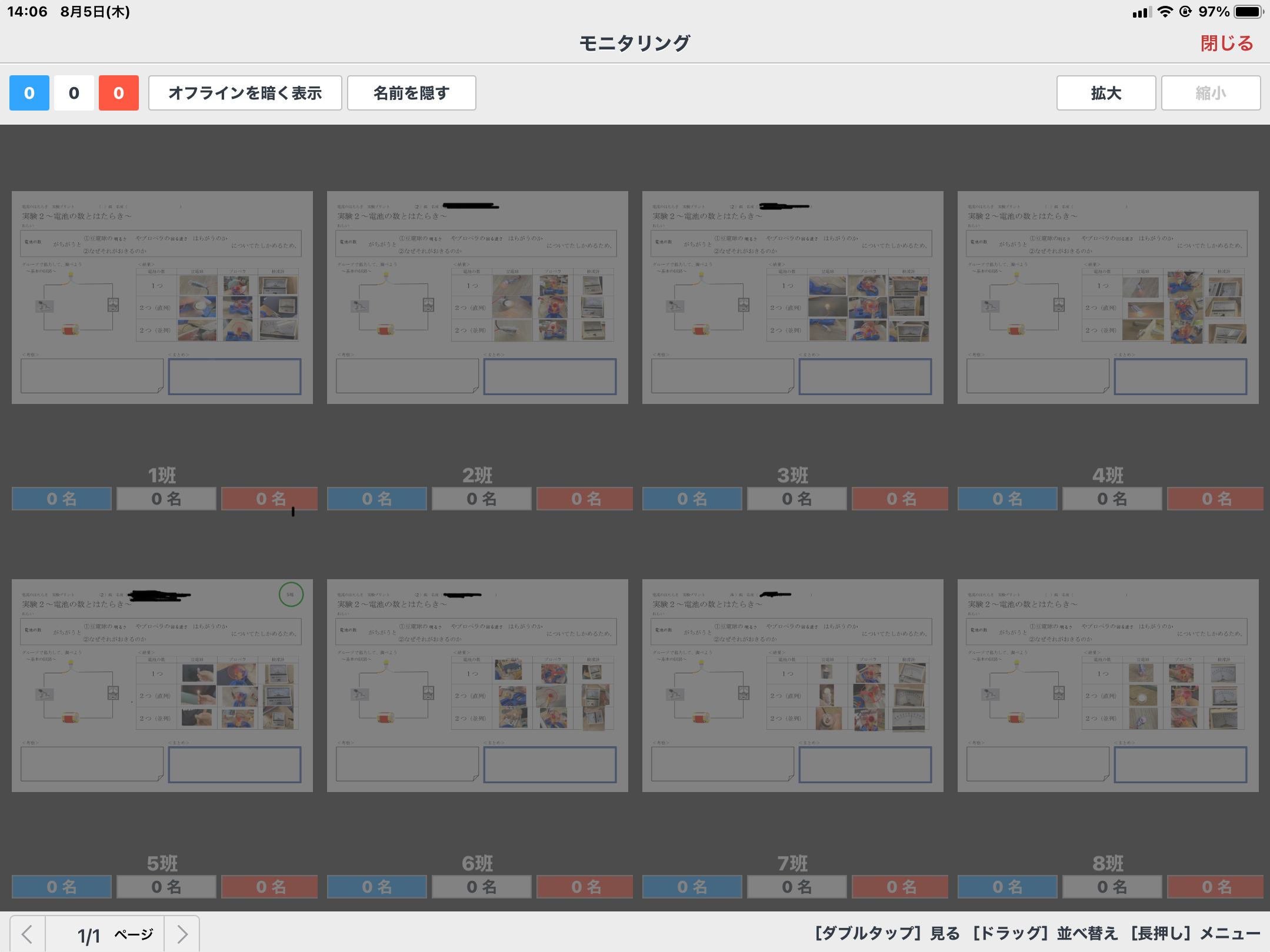 ※実験を行った日とは別の日、事前に個々に実験の記録シートを印刷