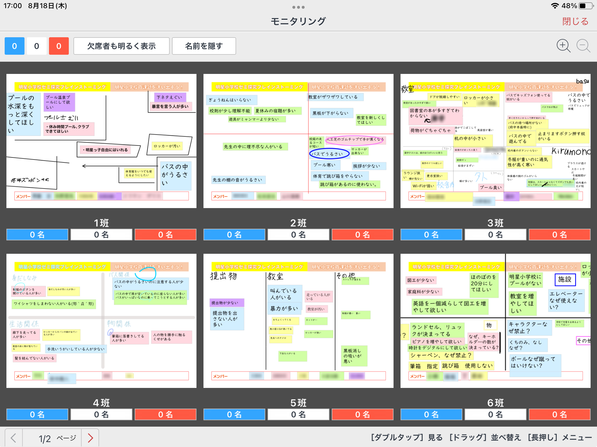 『学校の課題を洗い出そう』というテーマで、ブレインストーミングを体験する。