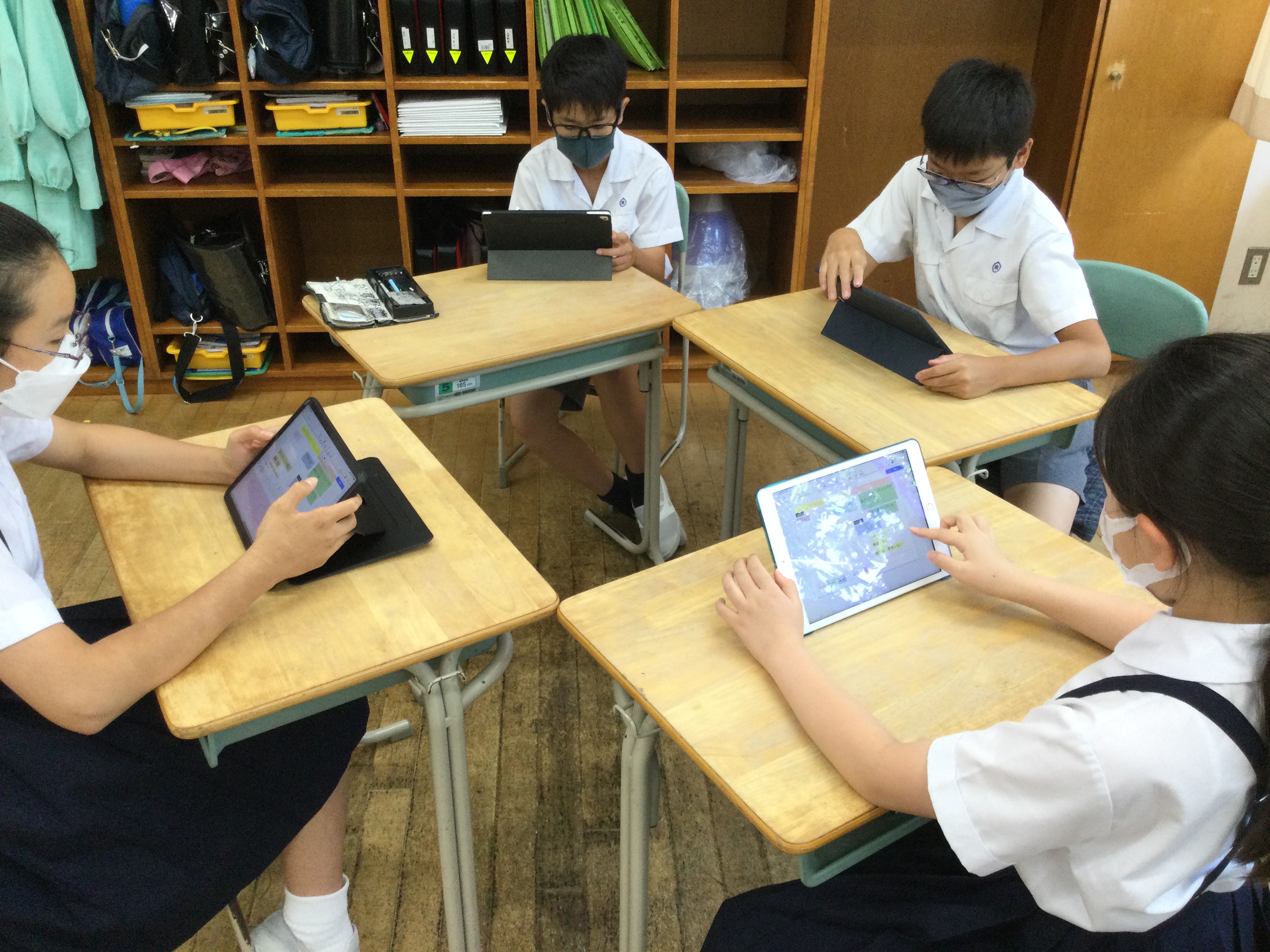 ・グループ学習設定にすることで、一緒に取り組む児童同士が意見を見合いながら活動することができる。