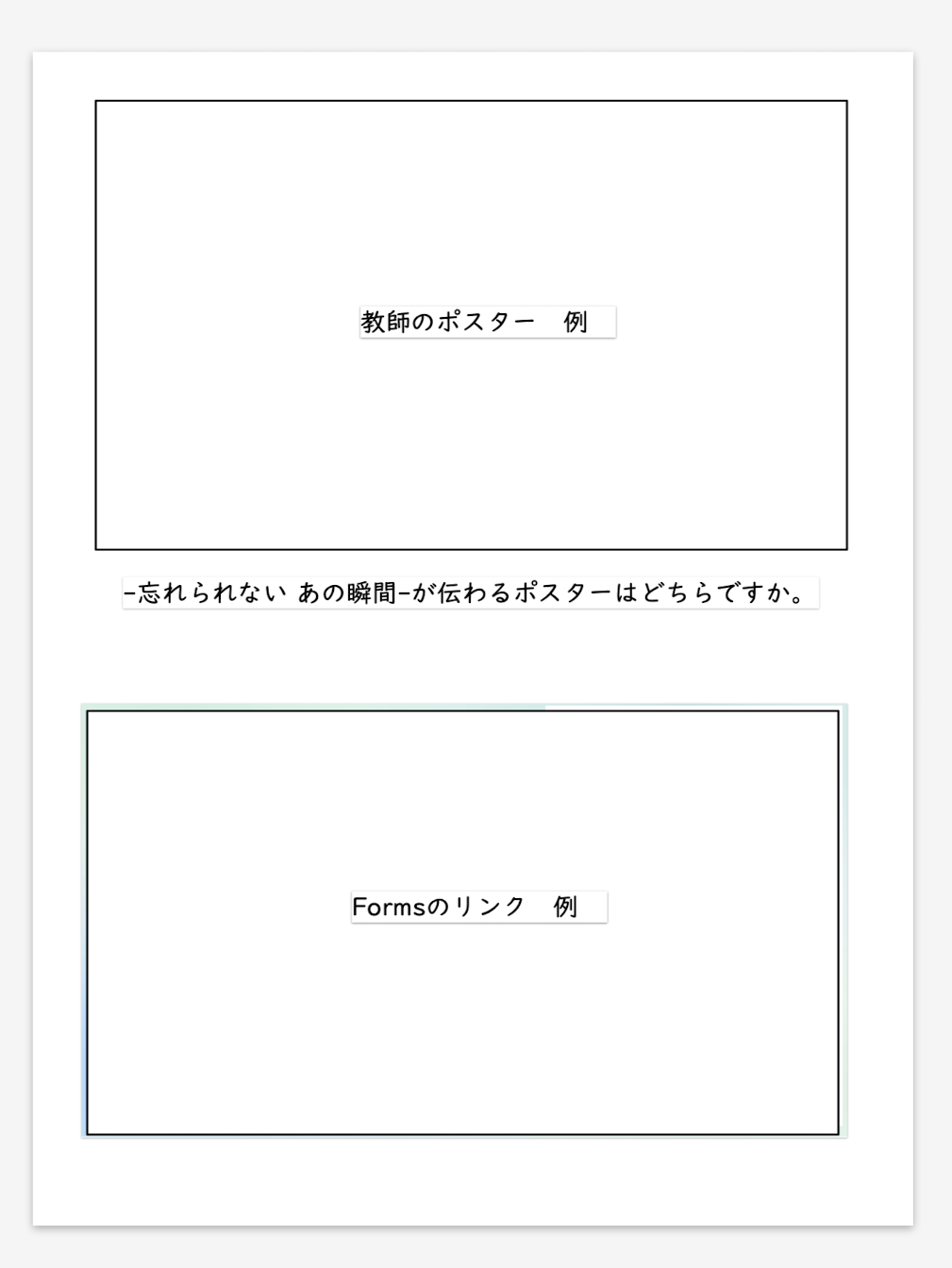 ・Formsを活用して、どちらが目的に合っているポスターかを集計する。