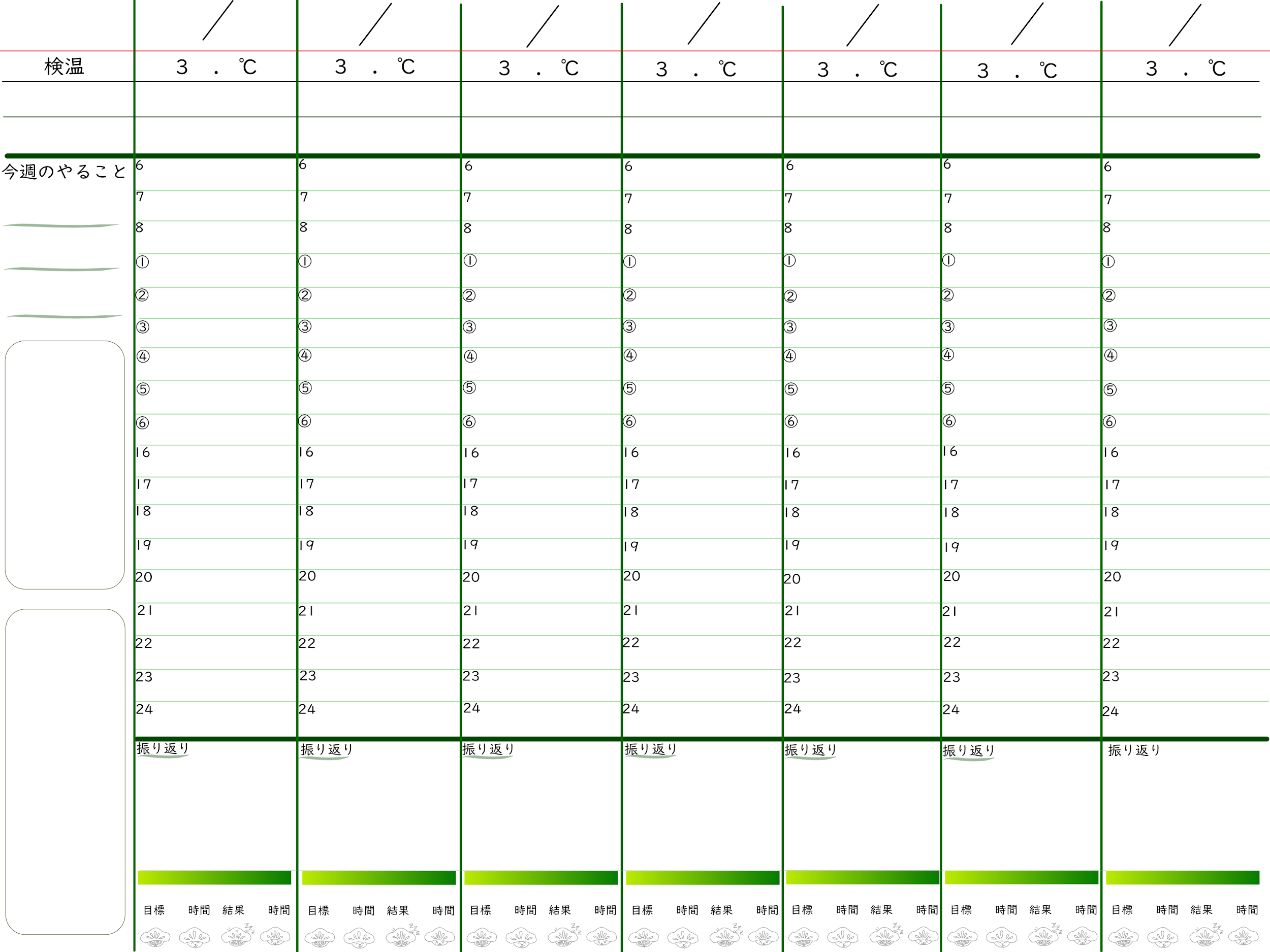 まつぼうとは本校のマスコットキャラクターである。まつぼうシートの下部にそのイラストがあり、4つの表情(悲しい、楽しいなど)がありその日の気分を◯することで生徒の様子がわかる。また上部には検温やTO DO リストを書くスペースがある。そしてメインの時間割やその日の振り返り、勉強時間を記録する欄がある。