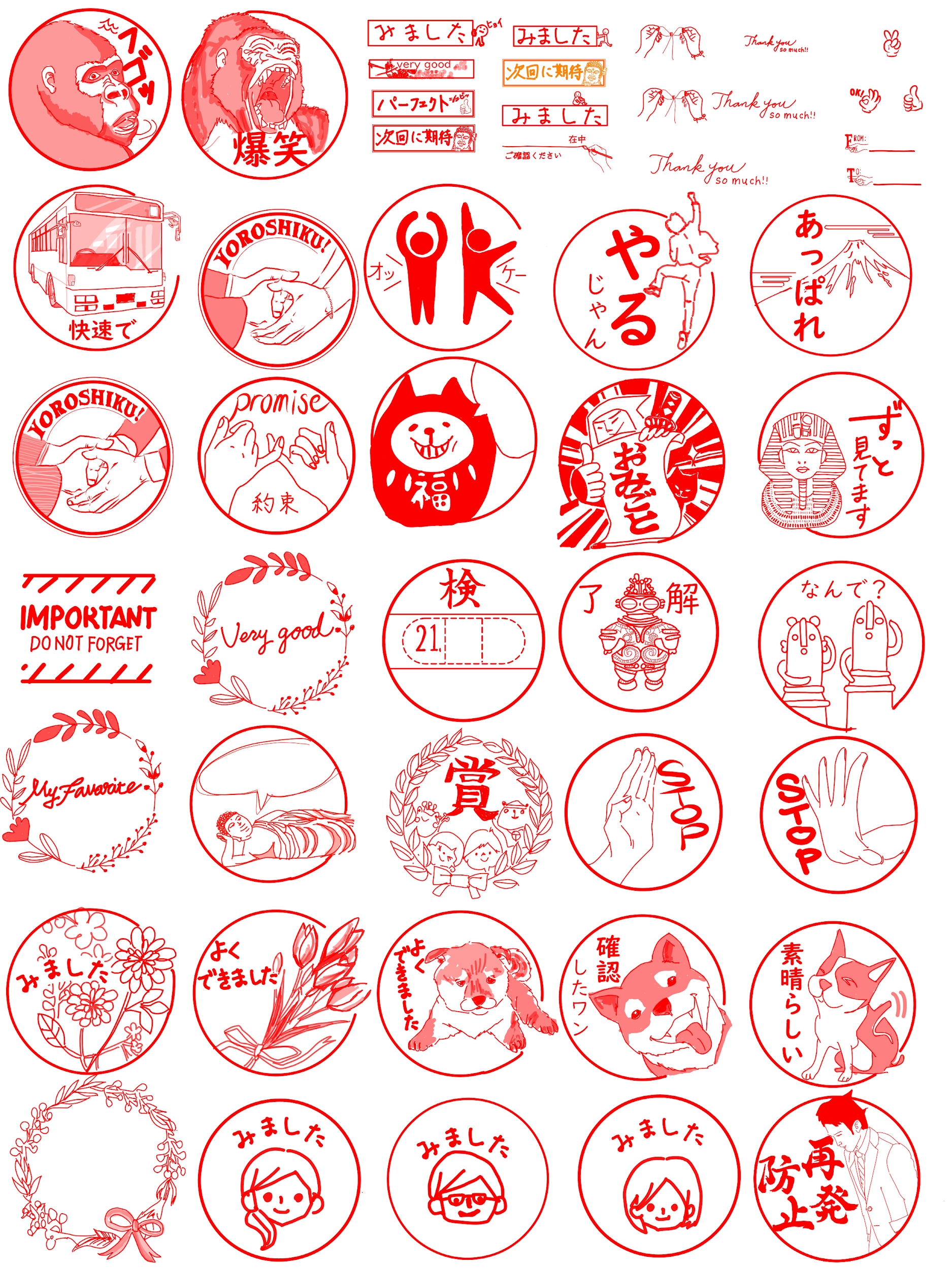 様々な検印スタンプを製作している。「かわいい」や「面白い」という生徒たちの声もあり、学習記録記入のモチベーションアップに繋がっていると考える。またMetaMoJiでノートを作成し授業を行っている教員は考査ごとの提出物チェックにも活用している。