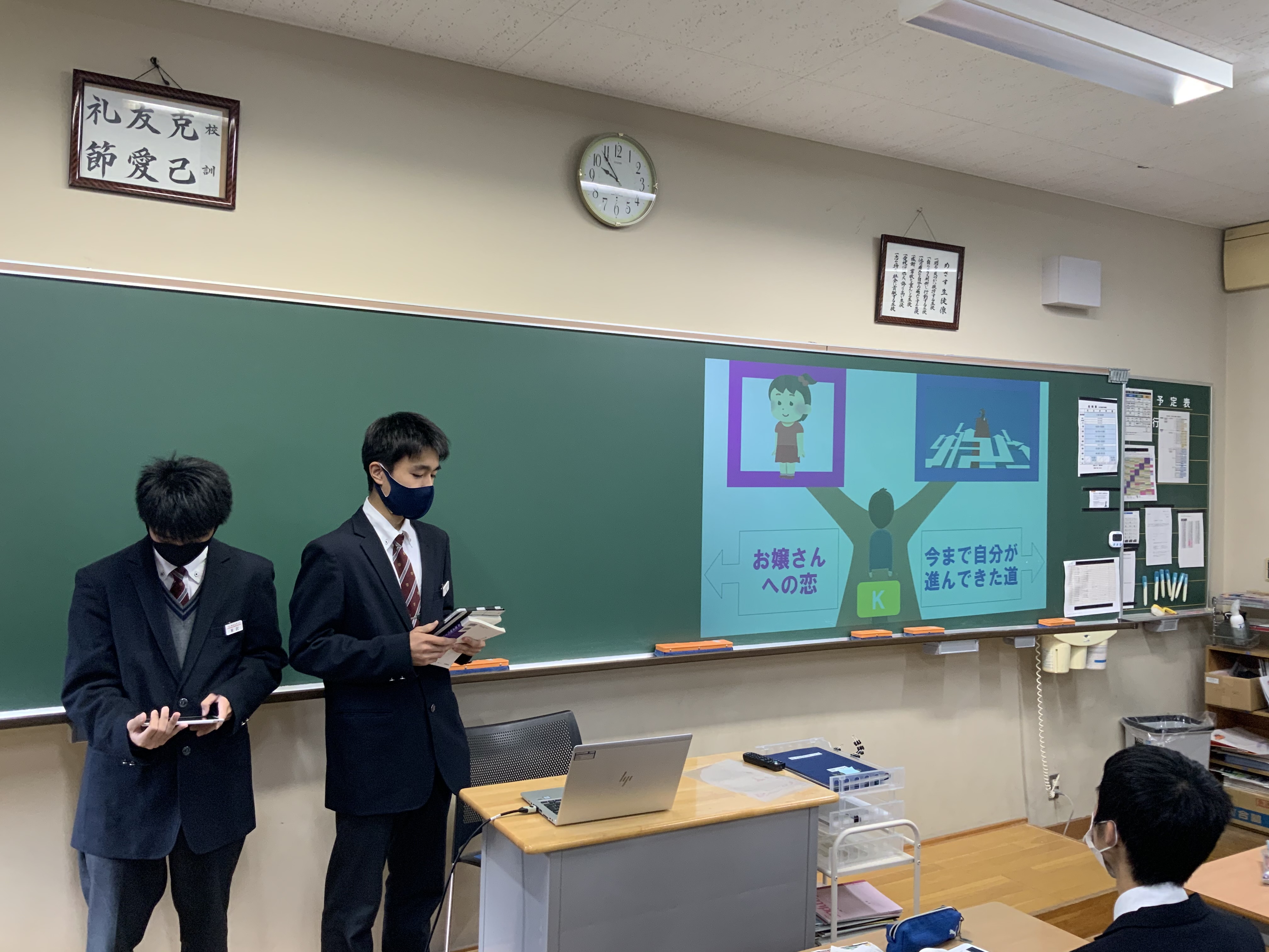 ClassRoomは主ではなく、集団での思考ツールとして活用した。共同編集を行うことで、プレゼン担当箇所の読みの共有をスムーズに行えた。
