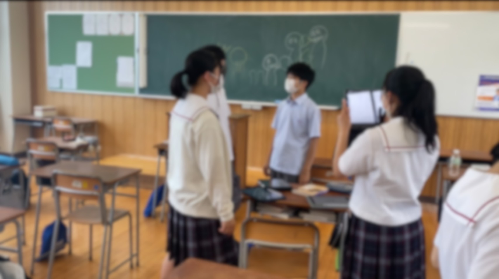 作った作品を別のグループと共有。会話の話し手、聞き手や動作主、動作の受け手にずれがないかを確認。制作した作品自体が生徒の興味関心を高めるため作品共有はスムーズに行うことができた。