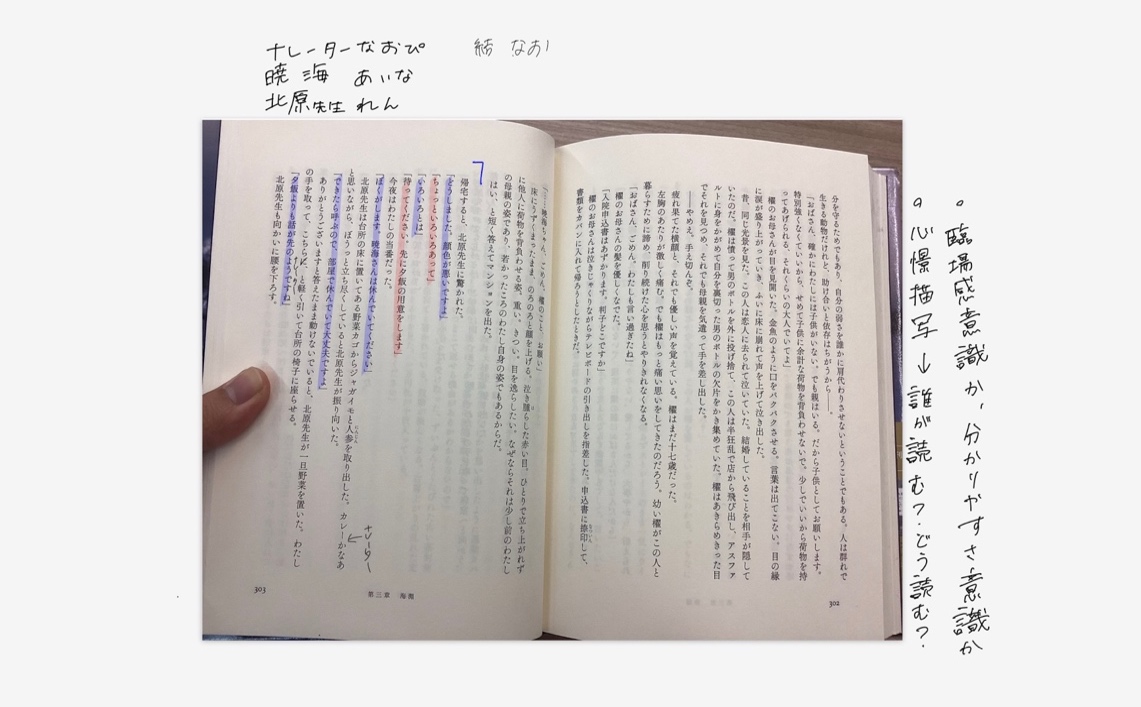 生徒はそこで共有をしながら、登場人物の分析や、作品セリフの分析を行う。