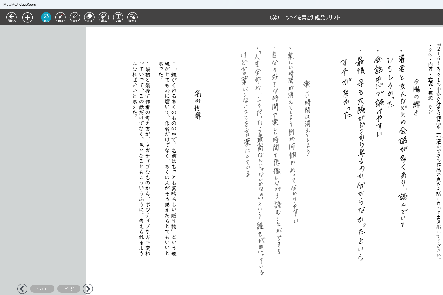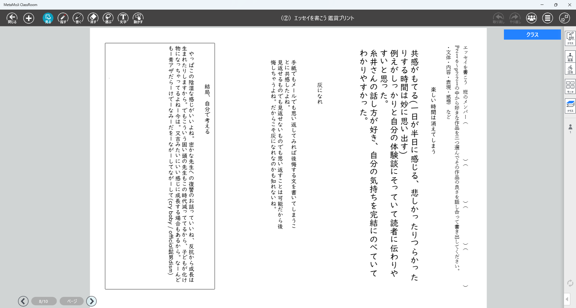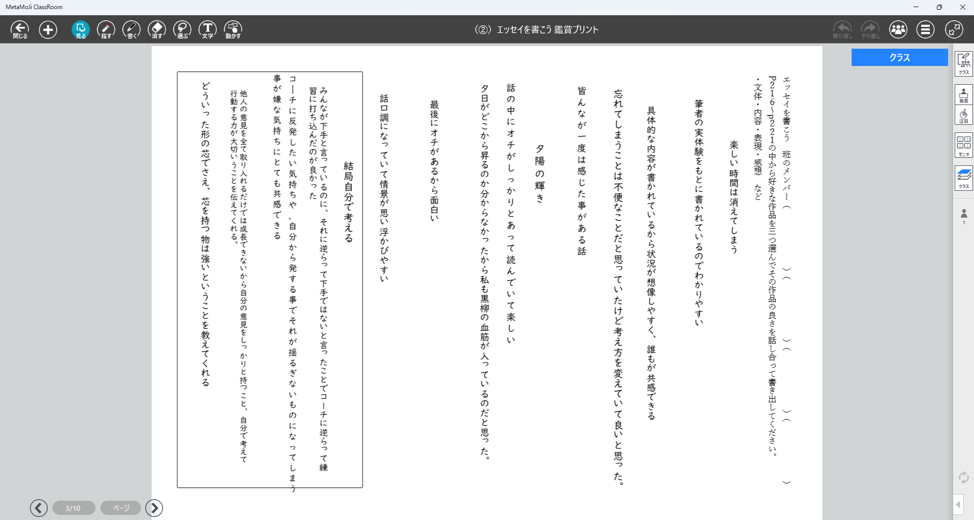 ・クラスで作成したエッセイをメタモジ上で見られるようにし、友達の作品を読む。