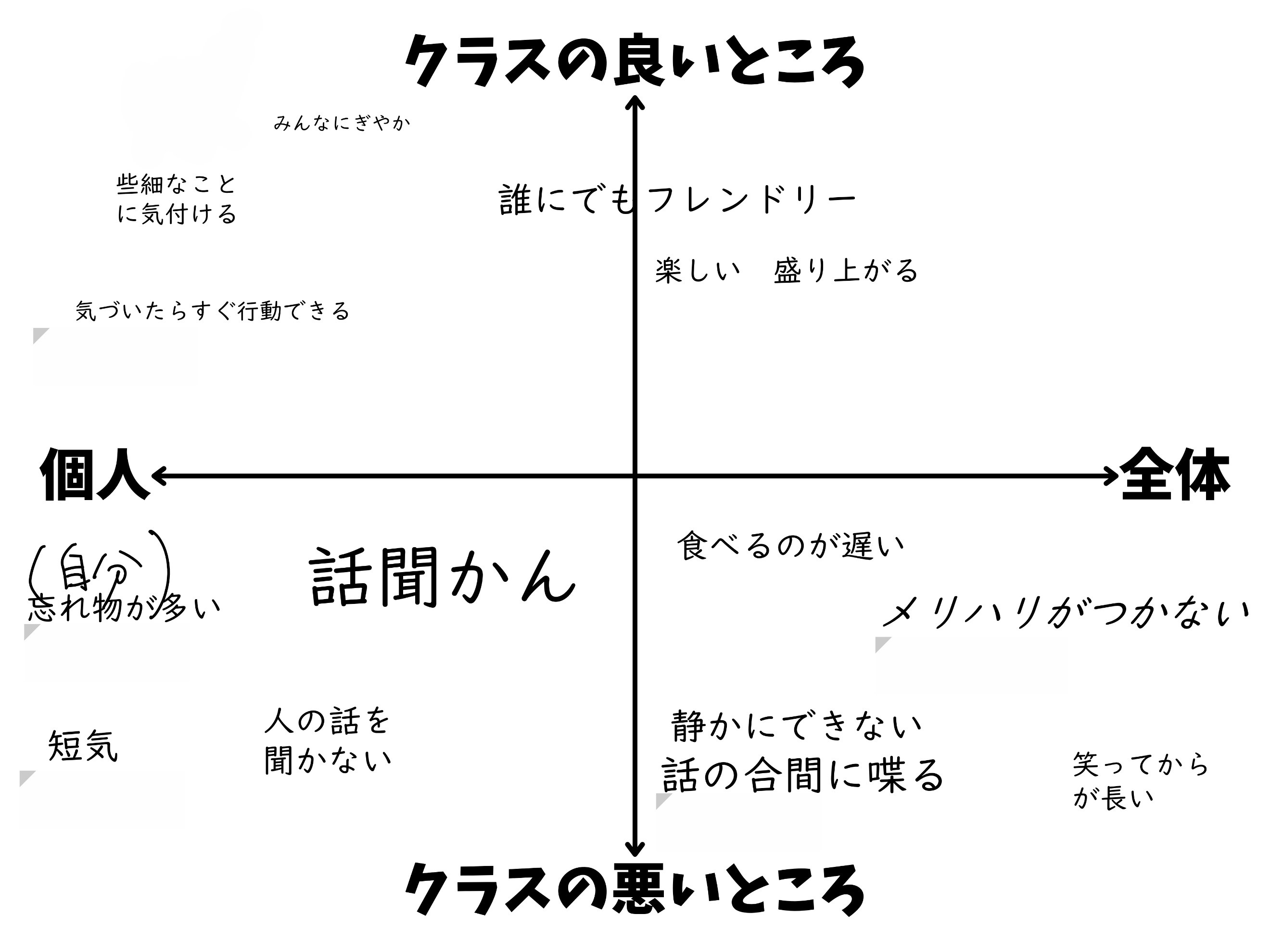 ・共有レイヤーや基本レイヤーを使って、生徒が付箋を動かせることで分類作業が容易にできる。