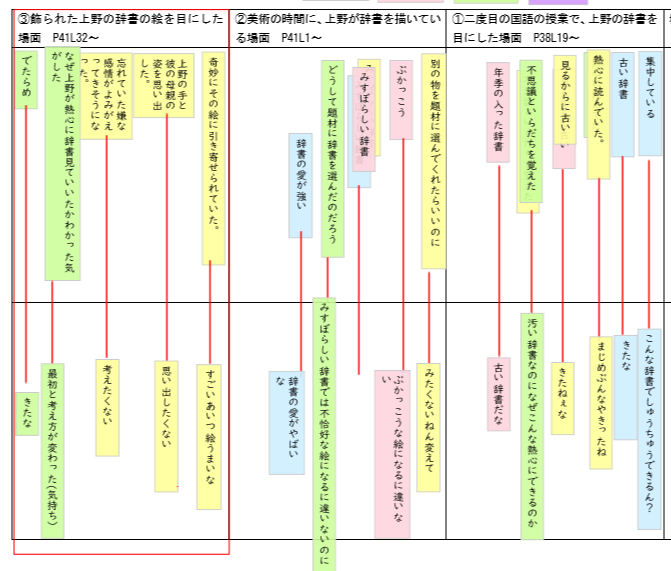 それをもとに、各自の意見にある作品に描かれた主題を捉えさせる。