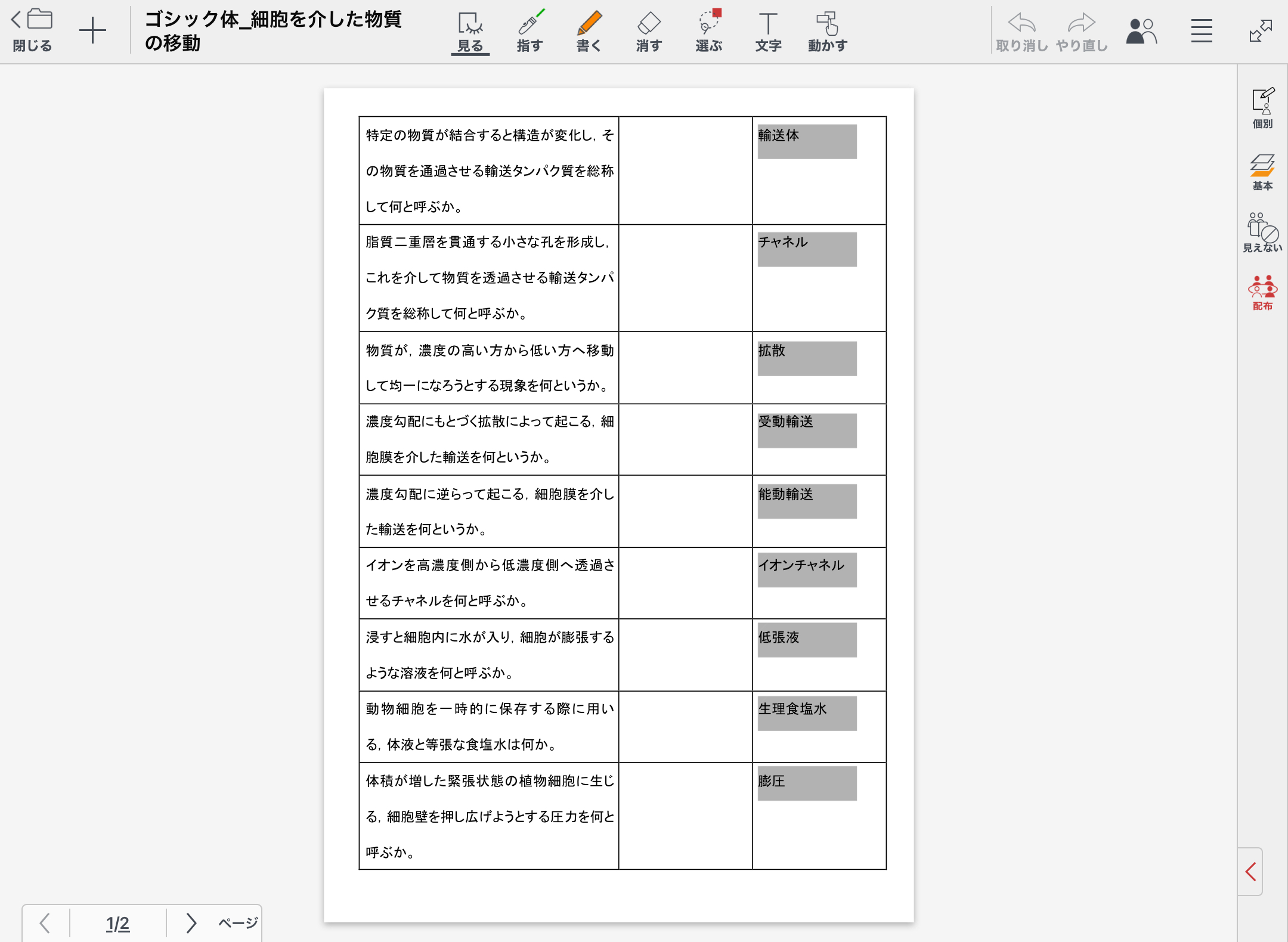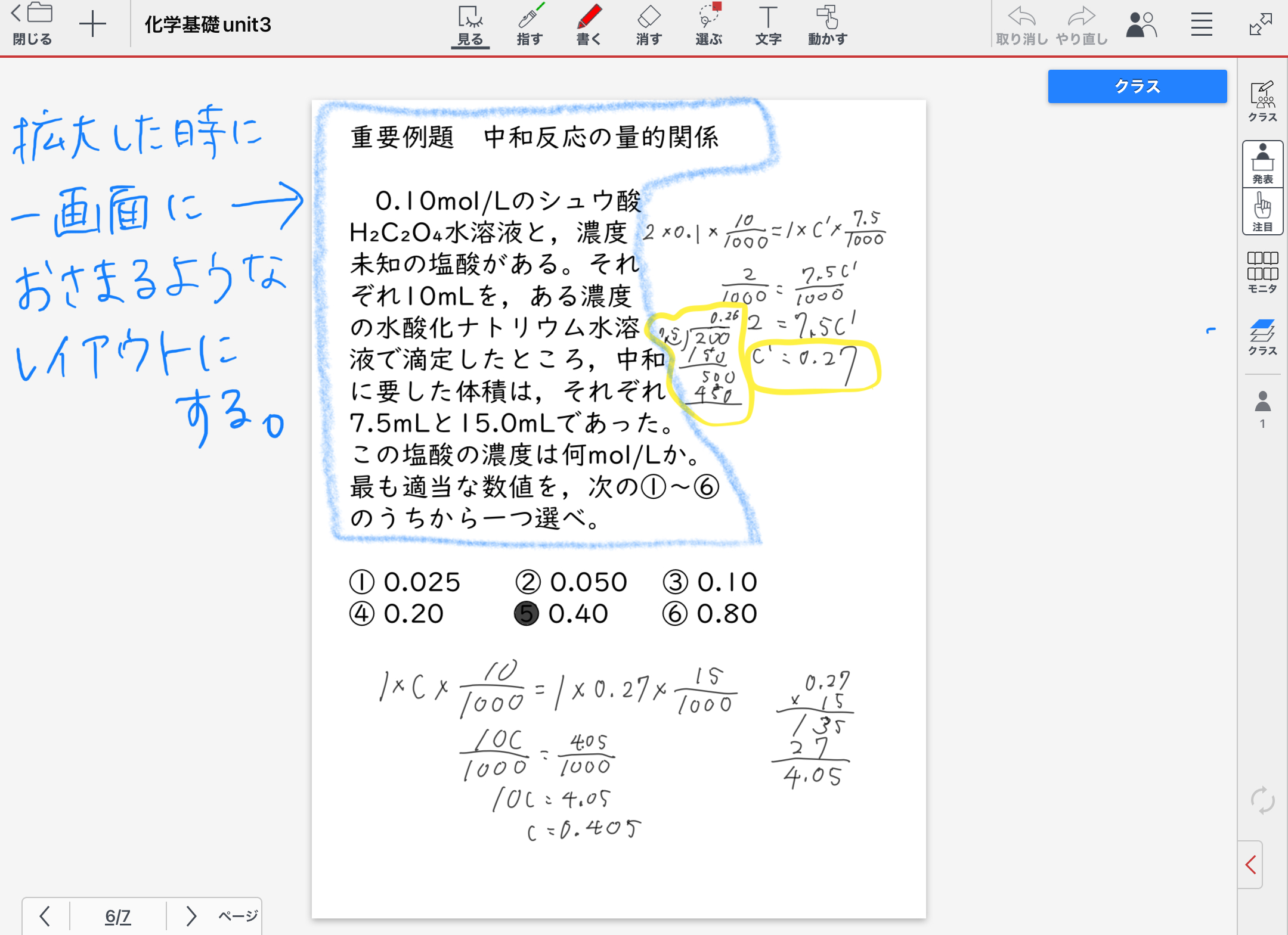 <よりよく使うために>問題演習の授業ノートでは,めくりは教師が挿入しがちだが,それは避ける。生徒自身がめくりを挿入することで,自身が一番見えやすい色を選択できるからである。