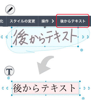 書き流しで入力したときと同様、「後から変換」でテキストに変換することができます。