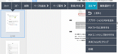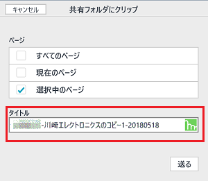 - ページ一覧でページを選んだ場合は、そのままページのサムネイルを長押しまたは右クリックして表示されるメニューの[送る]>[共有フォルダにクリップ]をタップしても、選んだページを保存できます。