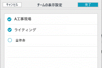 - 利用するチームをオンに、利用しないチームをオフにして、[完了]をタップします。