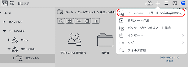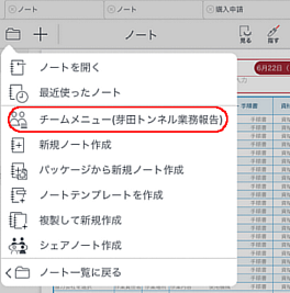 ※ここで登録したノートをチームメニューから選ぶと、コピーが作成されて開きます。