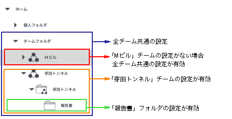 複数の階層に渡ってチームメニューが設定されている場合は、より末端に設定されているチームメニューが有効になります。
