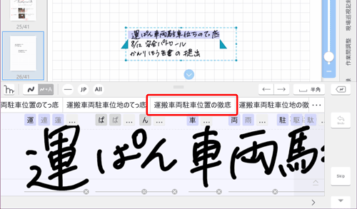手書き文字が、タップした変換候補に置き換わります。