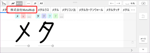 交ぜ書き入力画面で、操作3.の読みを手書きすると、操作4.の単語やフレーズが変換候補として表示されるようになります。