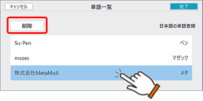 >[登録単語の一覧]をタップして、単語一覧画面で確認・削除します。
