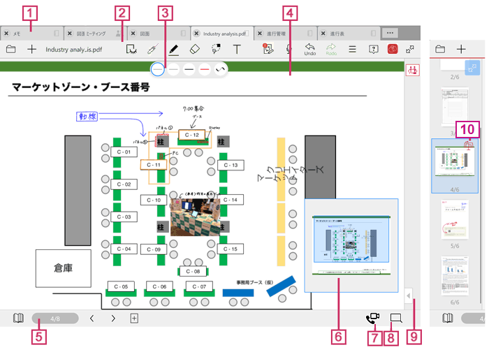 表示中のページ番号と、ノート全体のページ数が表示されます。 タップするとメニューが表示され、表示モードを切り替えたり、ジャンプ先を登録したりできます。 ![]() |