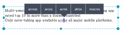 OSのスペルチェック機能を使って、テキストユニット内のテキストのスペルチェックをすることができます。