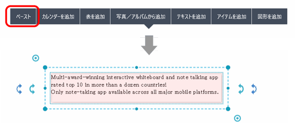 - ページの空いたところを長押しをして離す、または右クリックして表示されるメニューの[ペースト]をタップします。