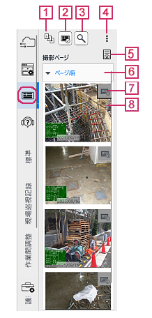 [ページ順]/[日付順]/[撮影工種区分順]を切り替えて表示できます。タップするたびに表示が切り替わります。