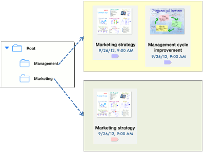 GEMBA Note allows you to organize notes using both Tags and Folders.