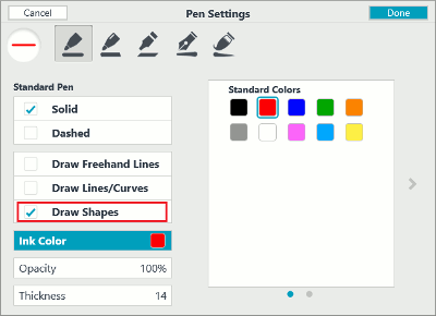 On the Pen Settings dialog, you can turn on the Draw Shapes option. This option is available for Standard Pen and Highlighter Pen.
