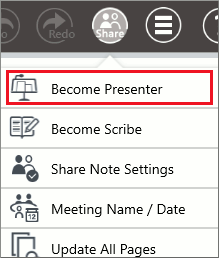 To take control of the current meeting, please tap [Share] on the top bar menu > [Become Presenter].