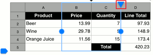 After you create a spreadsheet in a page, you can easily modify table rows and columns.