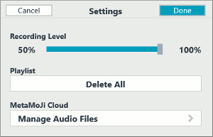 You can import audio data (*.m4a,*.mp4,*.mp3,*.aac,*.wav,*.aiff,*.aif,*.aifc,*.afc,*.caf) to a note in GEMBA Note.