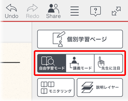 | 自由学習モード | 参加者が自由に授業ノートを見ることができます。 | |