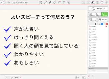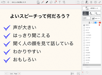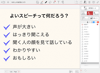 授業ノートを開いているとき、先生は先生モードを切り替えることで参加者の画面をコントロールできます。学習内容にあわせて先生モードを切り替えながら授業を進めます。