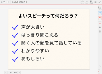 | 講義モード | 自分が発表者になり、その画面をすべての参加者のデバイスに表示します。 ほかの参加者はMetaMoJi ClassRoomの画面を操作できません。 *ほかの参加者を発表者にしたときも講義モードになります。 | |