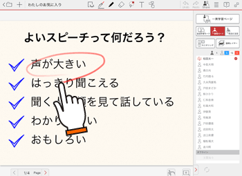 授業ノートを開いているとき、先生は通常のノートと同じ方法で、画面の拡大・縮小やページの切り替えができます。