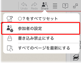授業ノートを作る画面で「参加者の設定」をタップします。