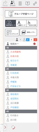 グループ学習ページを表示しているときは、生徒の名前がグループごとに表示されます。